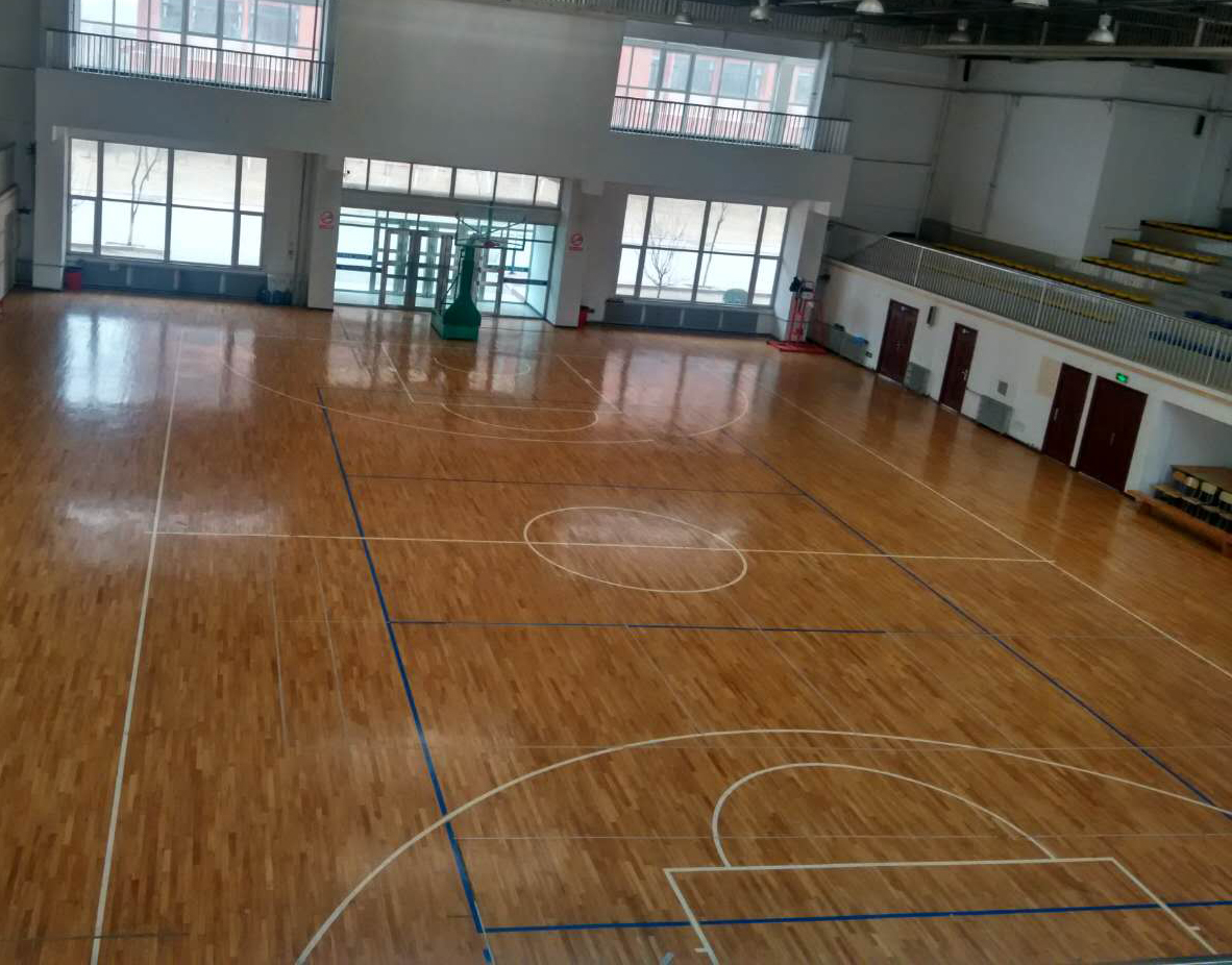 体育馆内上下两层,二层为看台,可同时容纳400名观众,场内为木质地板铺设,约750㎡,有标准篮球场地一块,周围设有男,女更衣室,卫生间,小型仓储室,办公室各一间,运动员临时休息凳8条。东、西、南、北四门可同时方便出入。白日光线充足,晚上灯光明亮,可满足小型篮球或排球的比赛。