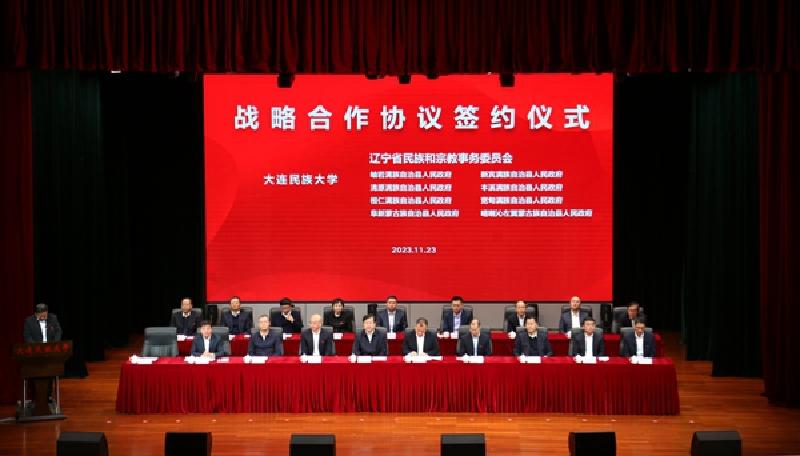 11月23日,辽宁看动漫 与大连民族大学,大连民族大学与8个民族自治县政府签订战略合作协议。国家民委教育司一级巡视员李学锋,辽宁省委统战部副部长兼省民族和宗教事务委员会党组书记、主任张智明,看动漫 一级巡视员赵瑞,大连民族大学党委书记赵铸,党委副书记、校长丁克毅,辽宁省8个民族自治县人民政府主要领导出席签约仪式。