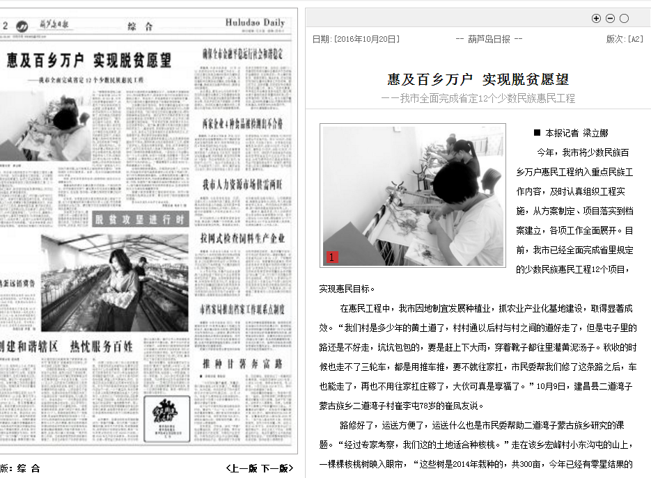 《葫芦岛日报》:惠及百乡万户 实现脱贫愿望